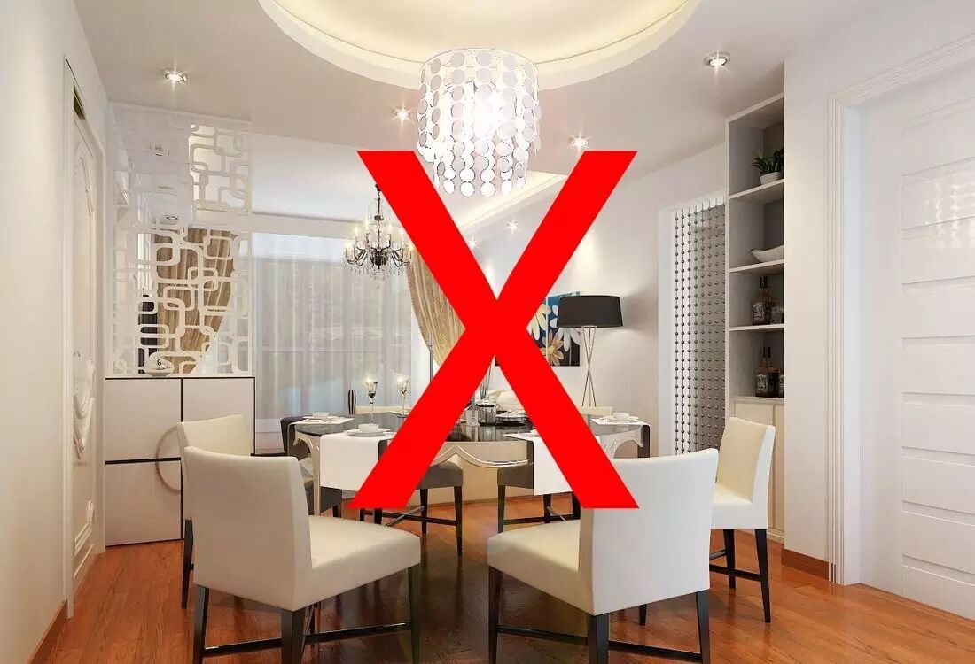 【正确案例:用餐区域应有适度照明,但灯光位置不一定要在用餐区域的正上方】